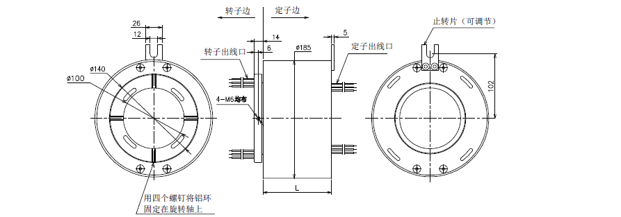 緊定螺絲固定。定子部分通過止轉(zhuǎn)片與設(shè)備固定部位連接。 |